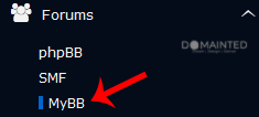 4. On the left side of your screen you should locate the "Forums" category. Click on it and then click on the "MyBB" link that will appear.