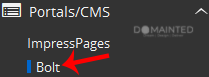 4. On the left side of your screen you should locate the "Portal/CMS" category. Click on it and then click on the "Bolt" link that will appear.